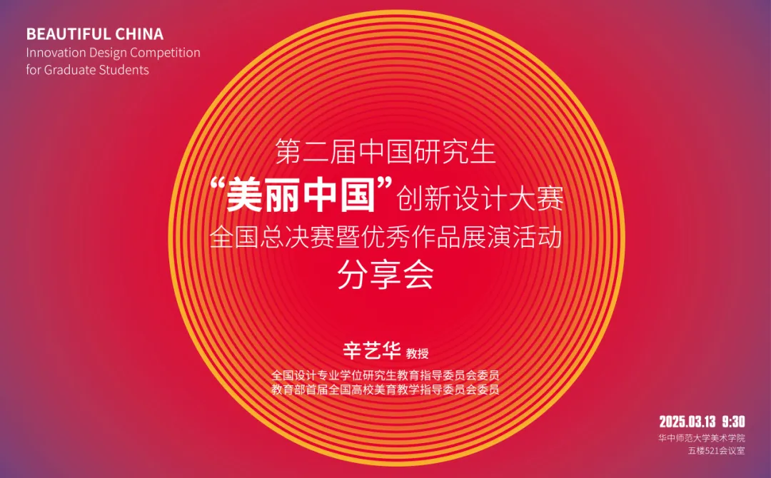 2025年3月13日,必赢集团网站举办了以“美丽中国”创新设计大赛为主题的分享会,作为2023年6月新设立的国家级重点赛事,该大赛已纳入中国研究生创新实践系列赛事体系,是国内鲜有的聚焦设计类研究生的高层次竞技平台。会议邀请必赢集团网站原院长、教育部首届全国高校美育教学指导委员会委员、全国设计专业学位研究生教育指导委员会委员辛艺华教授担任主讲嘉宾。讲座由必赢集团网站副院长庄黎主持,必赢集团网站全体研一研二学生和部分导师参加了此次讲座。