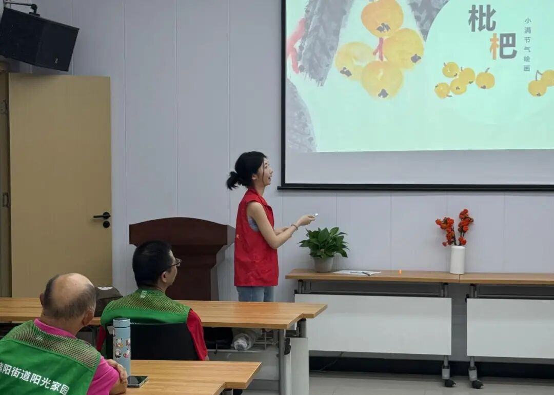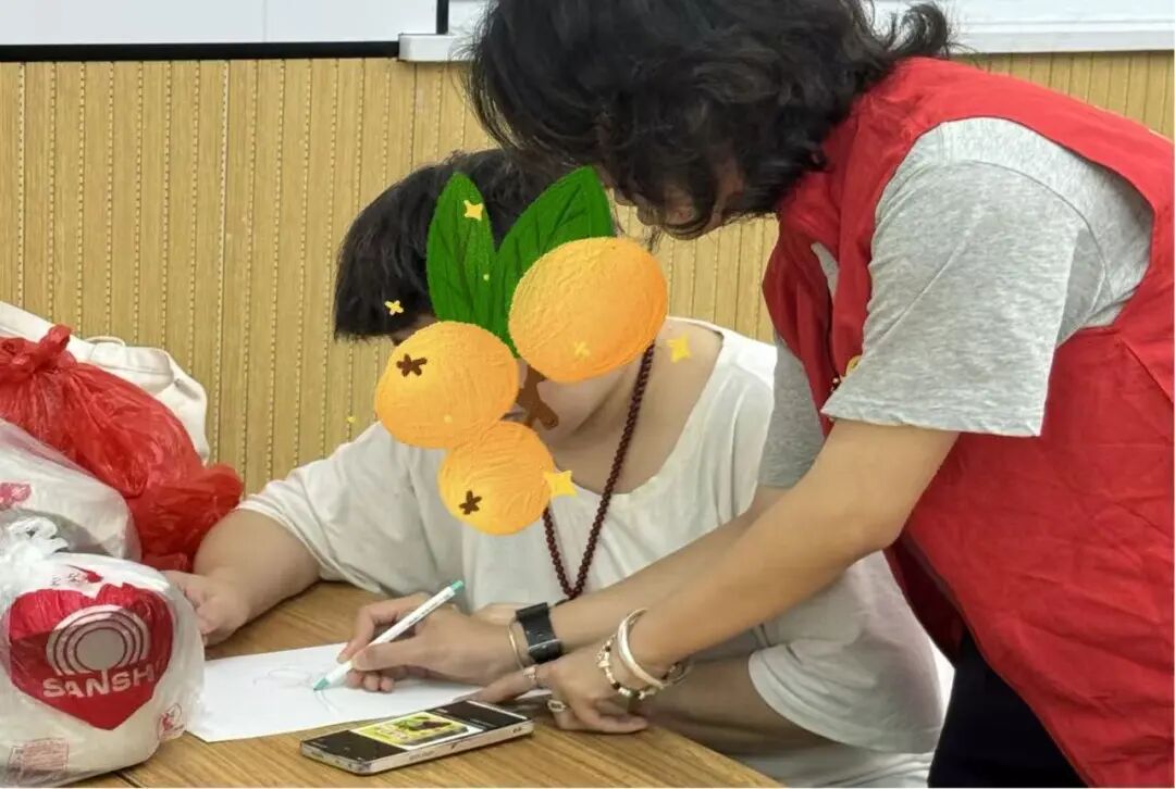 2025年5月21日小满时节,美育志愿服务队走进紫阳街阳光家园,为残障人士开展"巧绘枇杷果,圆满你和我"主题美术志愿服务活动。活动以“绘枇杷”为媒介,志愿者带领残障朋友在“小得盈满”的节气智慧中,用画笔探寻“接纳不完美”的生命圆满。